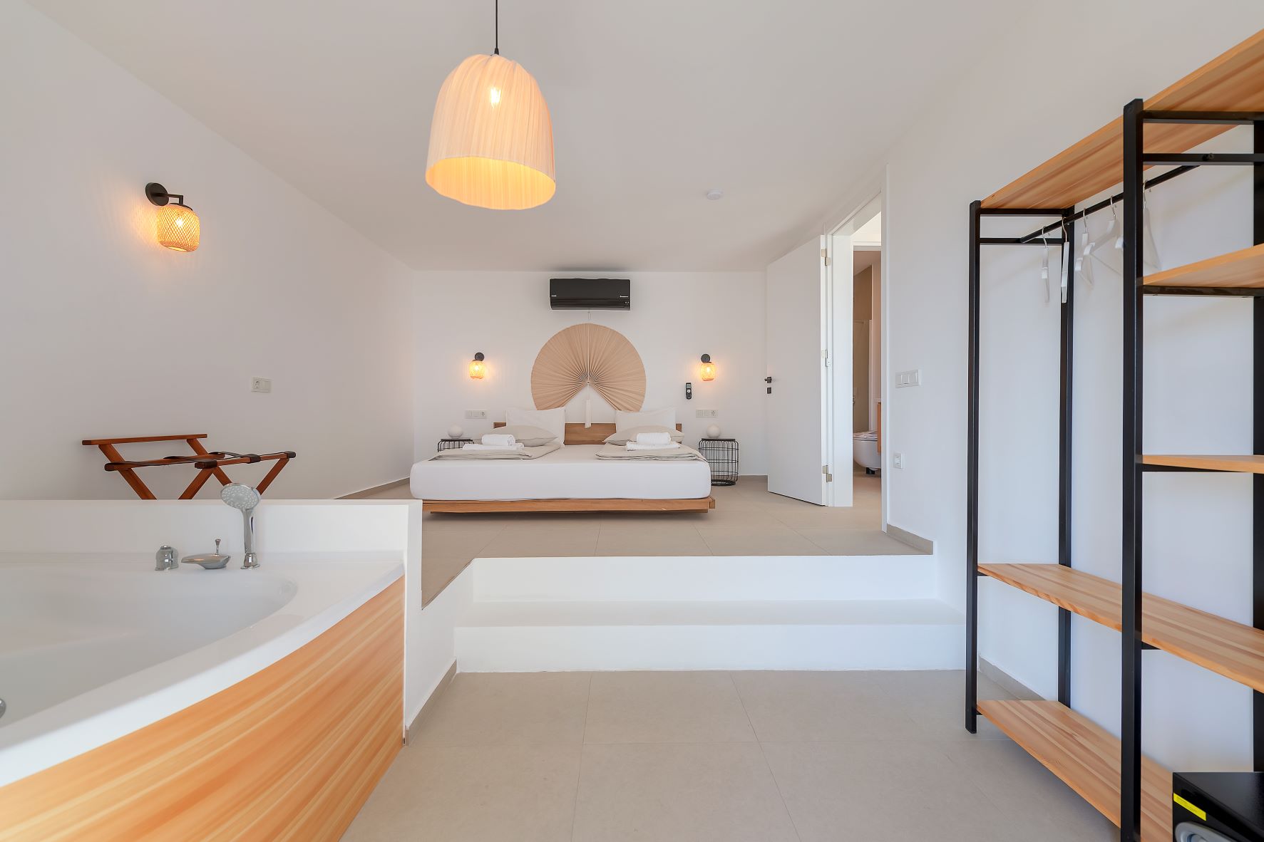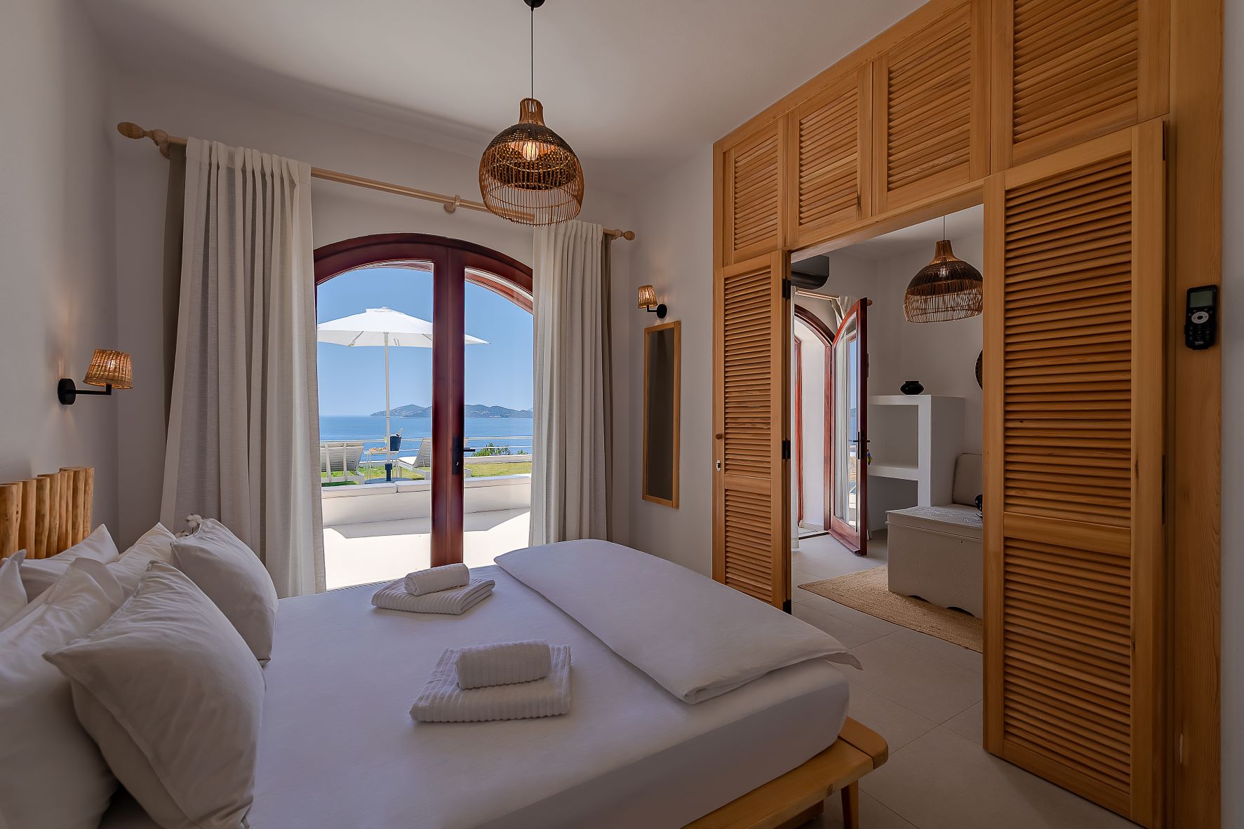 Nefes kesen deniz manzarası, unutulmaz gün batımları, yatak odasında jakuzi, mutfakta „Smeg“ buzdolabı, minimalist „urban“ tasarımı… 48 metrekare, 1+1, salon da SAT-TV (led tv), klima, amerikan mutfak. Yatak odasında jakuzi ve king size yatak (200x200), klima, elbise dolabı bulunmaktadır. Banyoda Duş/tuvalet, lavabo ve çamaşır makinesi bulunuyor. Deniz manzaralı terasında koltuk, bahçesinde ise 2 şezlong, yemek masası/sandalye ve „Sark kösesi“ vardır. Bahçesinde jakuzi bulunmaktadır. Ek yatak ile 3 kişiye kadar uygun. Bahçede küçük bir patika yolundan ortak havuza giriliyor (30 metre)