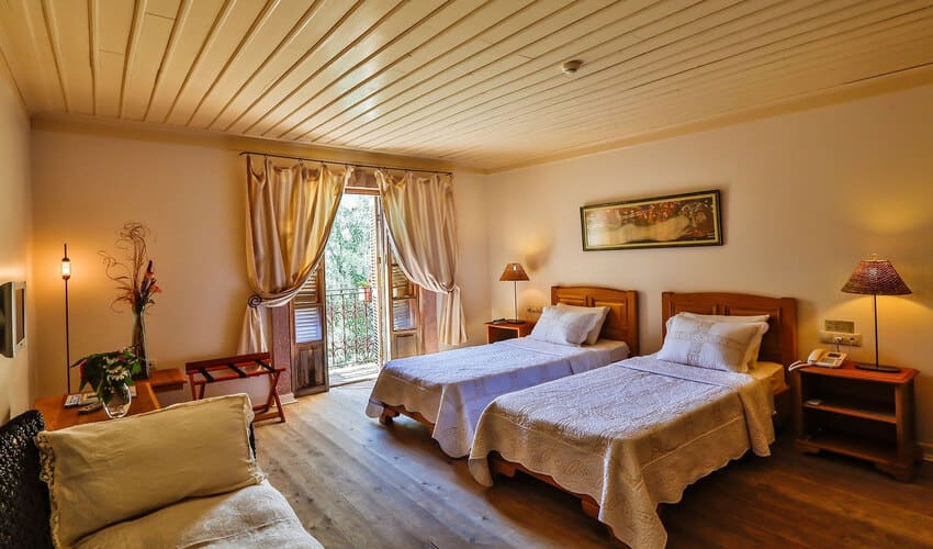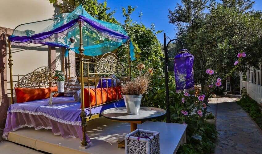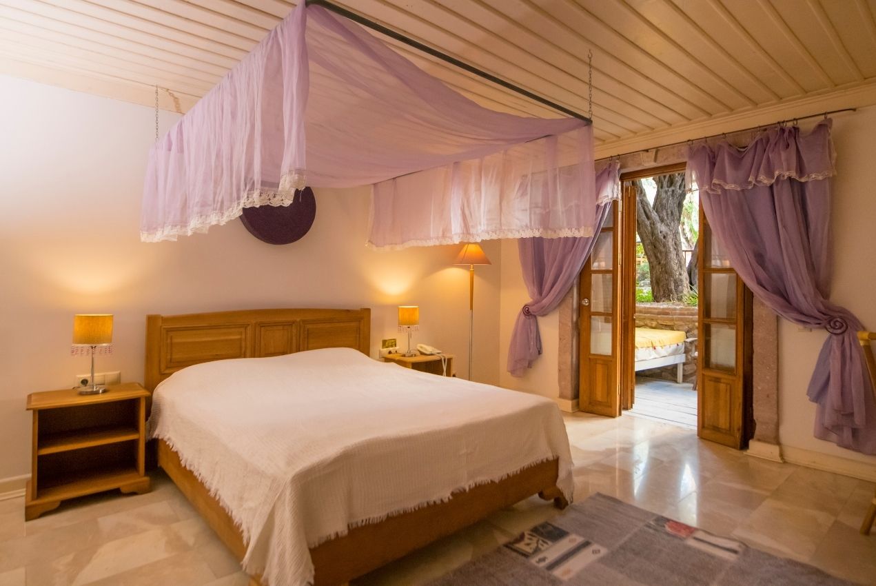 Zengin renkler ile süslenmiş ,ve yerleşimi ,dekorasyonu ile romantik bu oda (25 m2), balayı çiftleri ve romantik çiftler için özel ve gözlerden uzak keyifli bir gizlilik sunar.