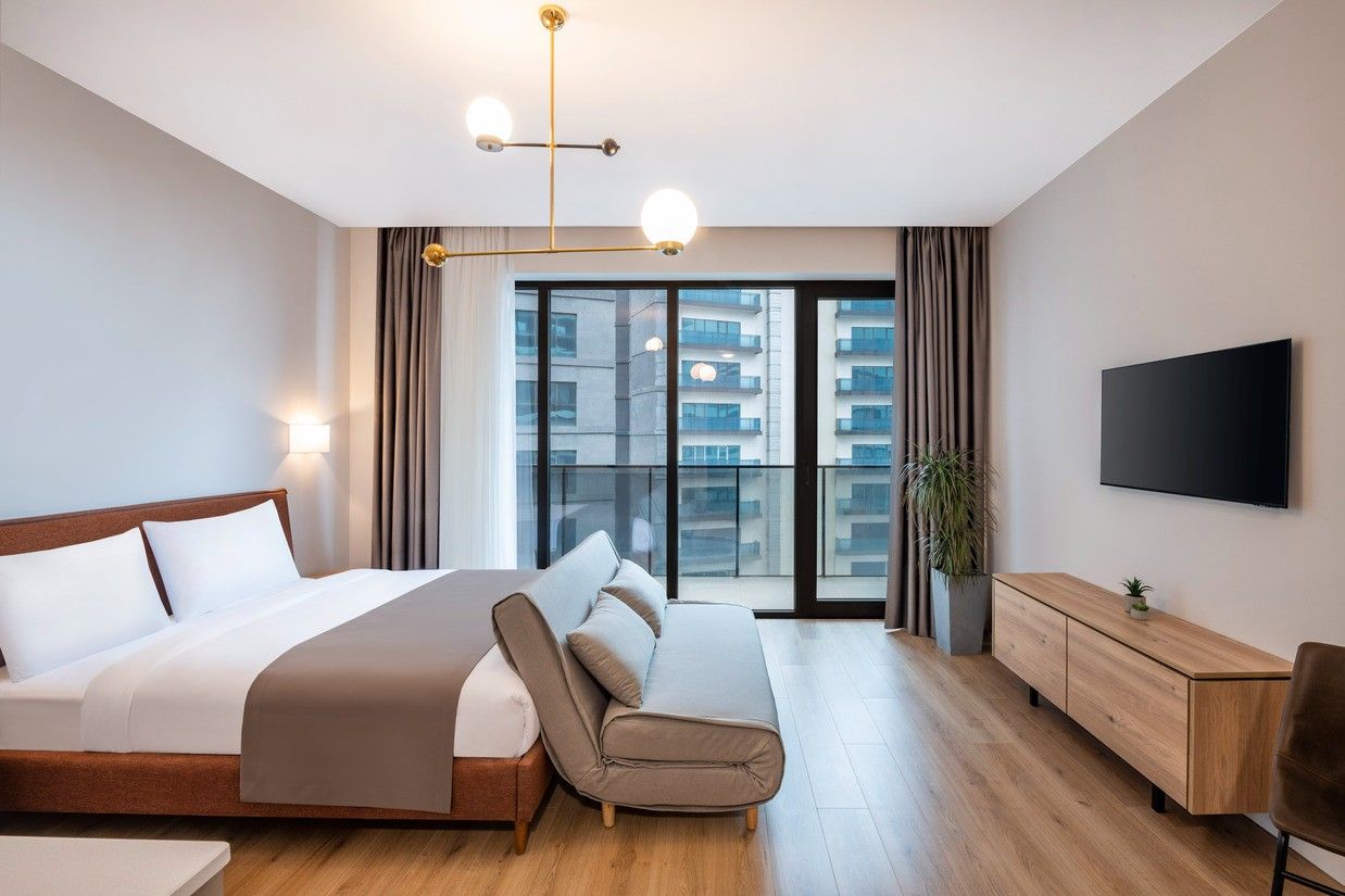 Experience the charm of our Preferred Suites, strategically positioned on the upper floors, offering picturesque views from the high-floor balcony. Featuring a Queen-sized bed, floor-to-ceiling windows, and a fully equipped kitchen, the room offers both comfort and functionality. Additional amenities include a convenient fold-out sleeper sofa bed, a cozy sitting area, a private furnished balcony, and a stylish bathroom with a walk-in rain shower. The captivating views from our preferred suites are truly inviting. Immerse yourself in a stay that seamlessly blends relaxation and practicality in our well-appointed space.