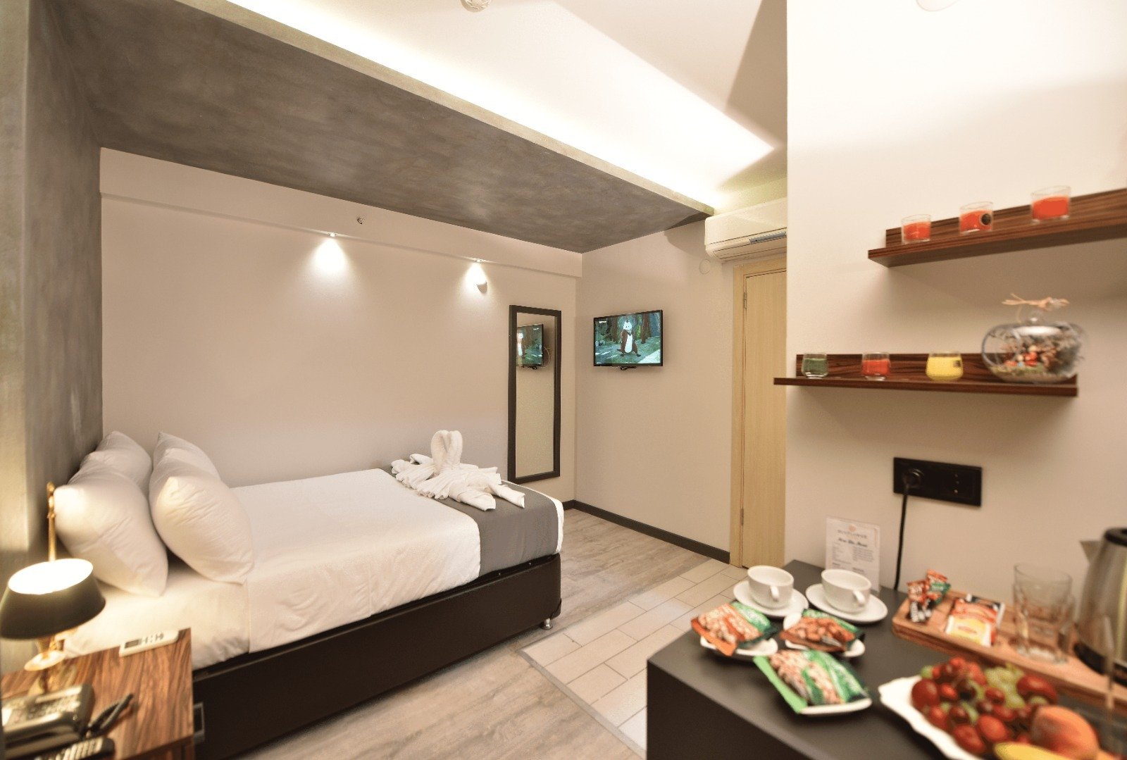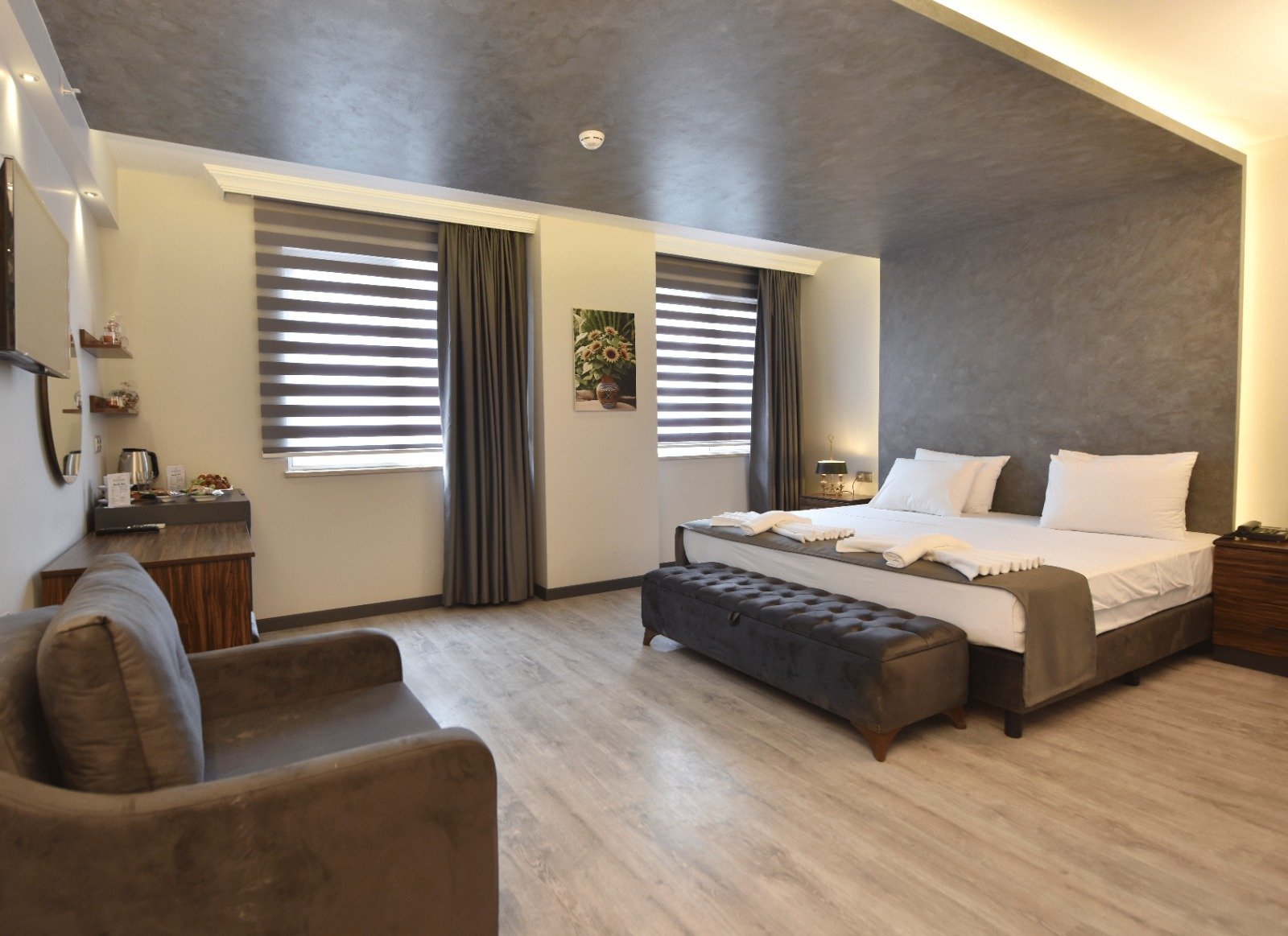 Her türlü konfora sahip, titizlik ve özenle kullanışlı tarzda özel olarak tasarlanmış, ferah ve geniş, sıcaklık duygusunu arttıran tasarım anlayışı ile planlanmış, kullanışlı banyo, özel tasarım ahşap mobilya ve kumaşlarla döşeli odalar.Şık olduğu kadar aynı zamanda geniş de olan odalarımız size lüks ve konforun mükemmel birlikteliğini sunmaktadır.