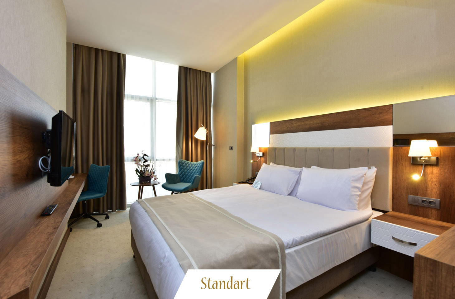 E-5 Şehir Manzaralı Standart, Deluxe, Connection ve Engelli oda tiplerimizde; Minibar, Merkeziz Isıtma/Soğutma, Direkt Hatlı Telefon, Ütü & Ütü Masası, Minibar, LCD Televizyon, Çalışma Masası, İkram Tepsisi, Su Isıtıcısı, Yastık Menüsü, Saç Kurutma Makinesi, Emanet Kasası, Banyo Kozmetik Ürünleri , Wi-Fi standart olarak sunulmaktadır. 310 oda kapasitemiz bulunmaktadır.